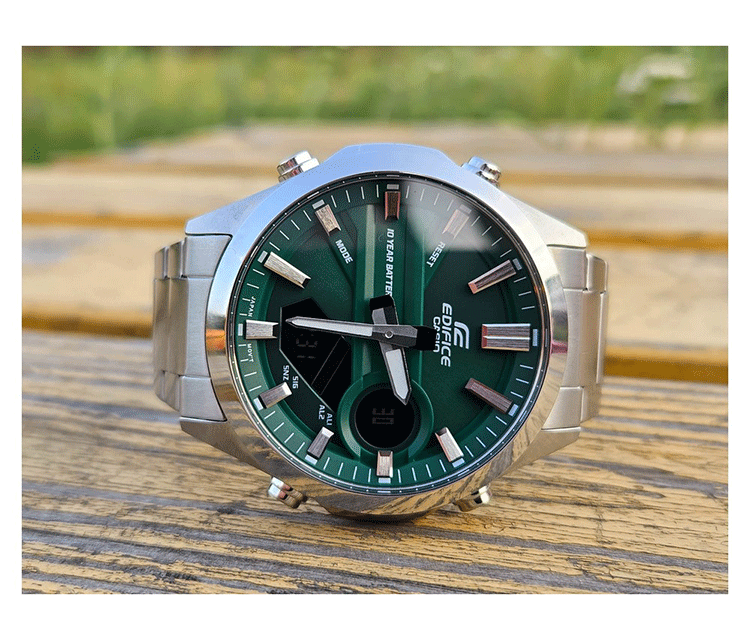 ساعت مچی کاسیو مدل CASIO EFV-C120D-3A دارای قابلیت هایی همچون کرنومتر ثانیه شمار و کرنومتر دقیقه شمار نیز است .