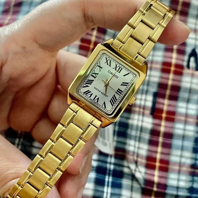 ساعت مچی کاسیو مدل CASIO LTP-V007G-9E با طراحی کلاسیک و مستطیلی، ترکیبی از سادگی و زیبایی را ارائه میدهد.