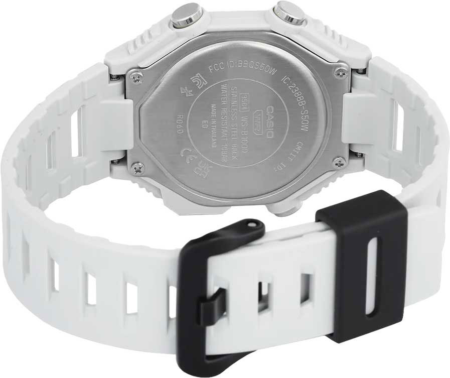 ساعت مچی کاسیو مدل CASIO WS-b1000-8B ک ساعت مچی دیجیتال اسپرت با بند رزین و بدنه دایره شکل از جنس قاب رزین است که مقاومتش در برابر آب 100 متر می باشد و جنس شیشه کریستال معدنی میباشد که ضد خط و خش است .